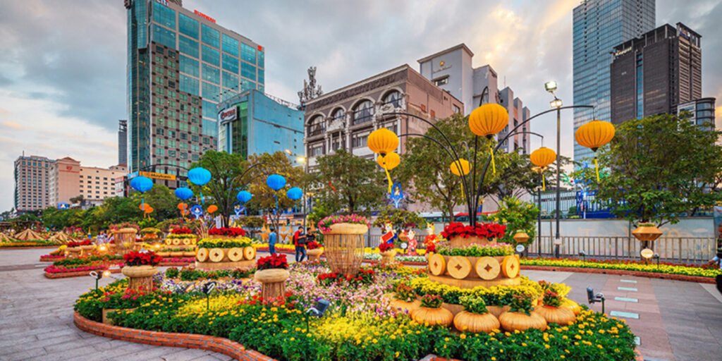 Visit temples, markets, and Nguyen Hue Flower Street.